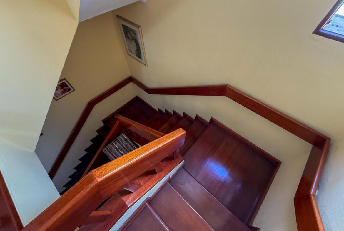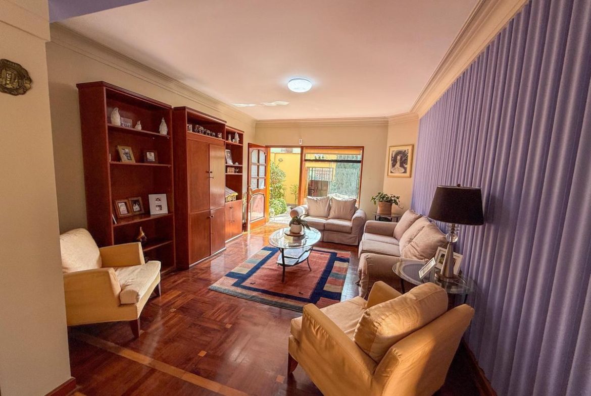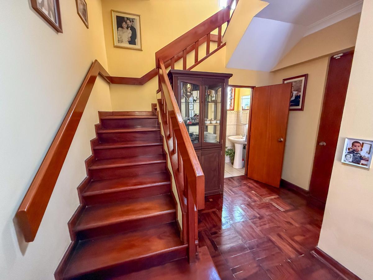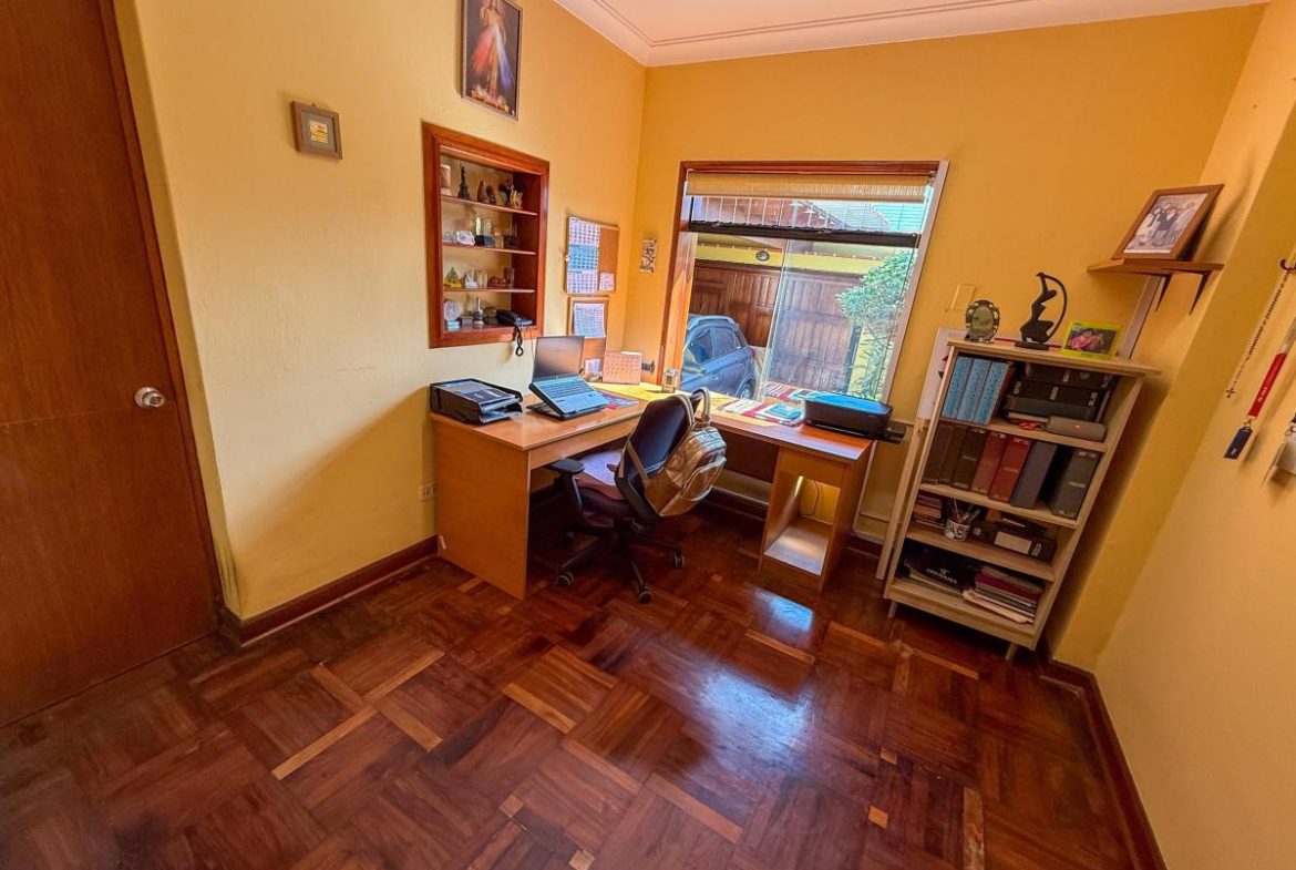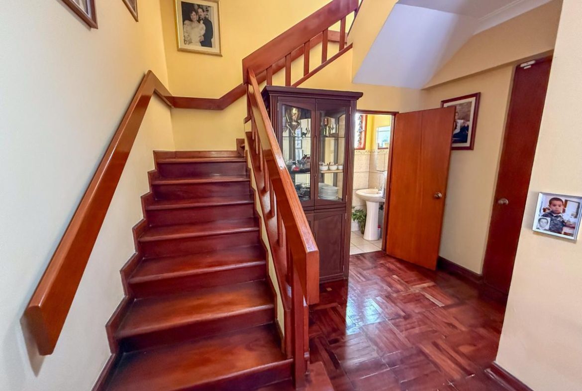 Segundo piso: Dormitorio principal con baño y closet de caoba; 3 habitaciones secundarias amplias; baño completo; estudio empotrado.