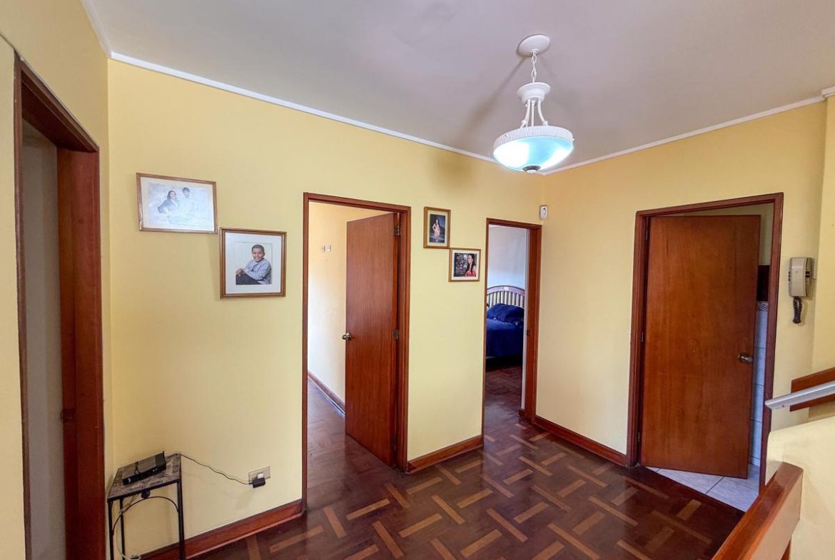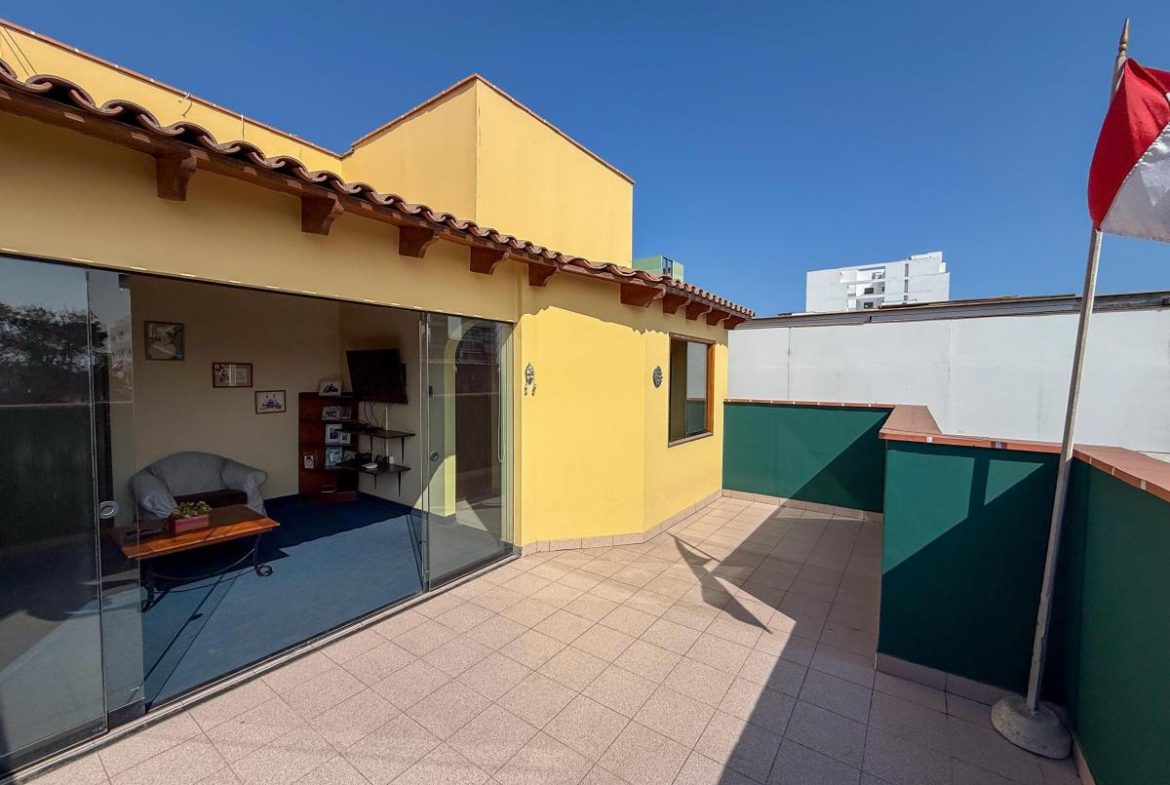 Tercer piso: Sala de TV con techo machihembrado; 1 dormitorio; terraza amplia; habitación y baño de servicio; tendal y depósito.