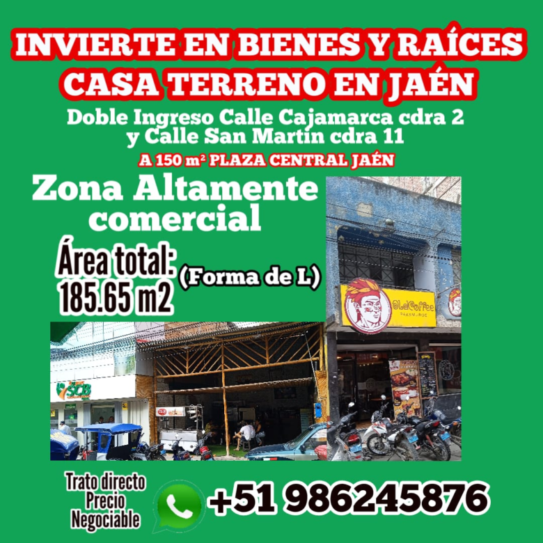 Se vende CASA TERRENO en JAÉN, CAJAMARCA – Perú.
