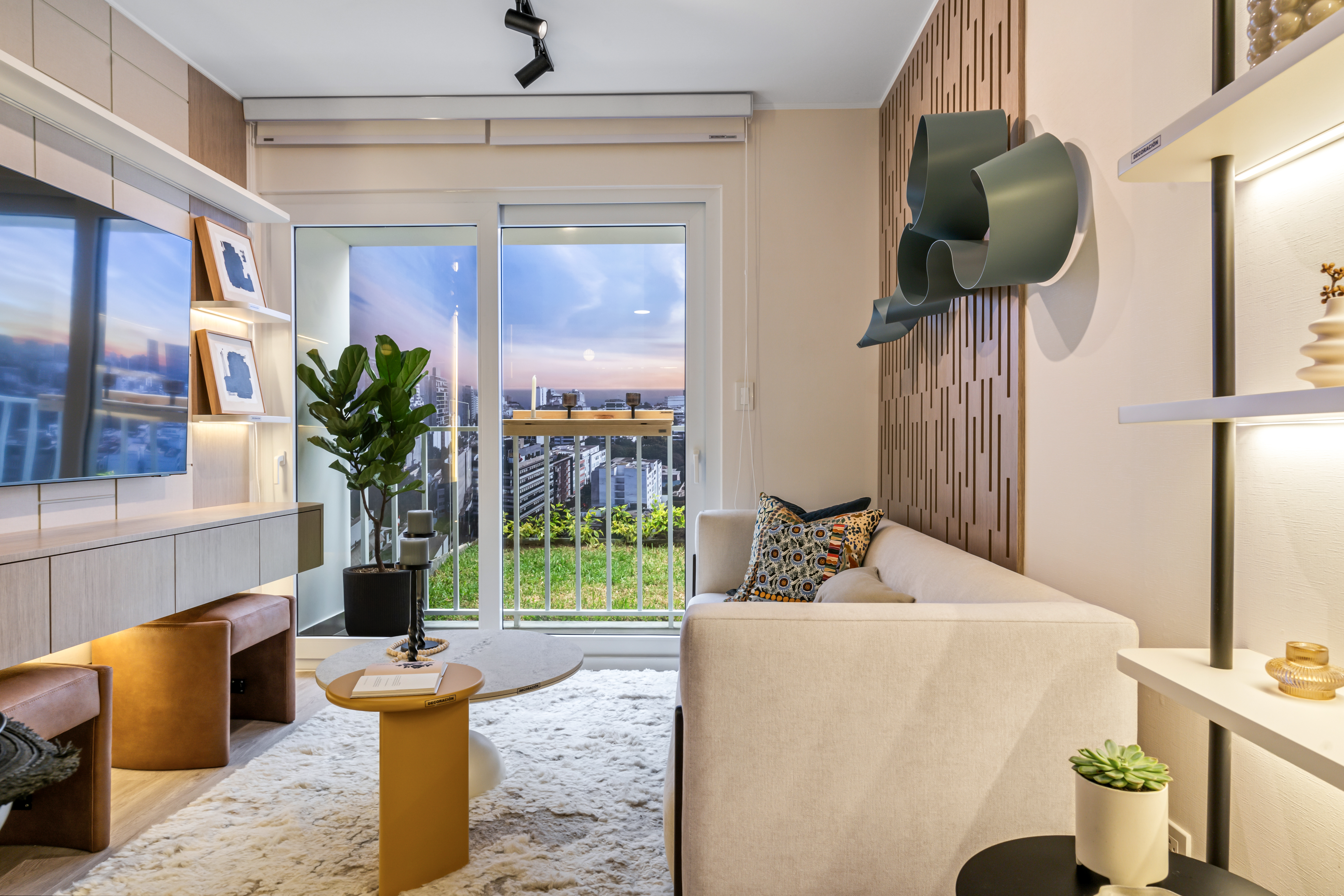 AFFINITY ofrece confort y funcionalidad en un entorno que se identifica con tu estilo de vida. Departamentos de 1 y 2 dormitorios desde 40 m², con diseño eco-friendly, arte en sus espacios y acabados de primer nivel.