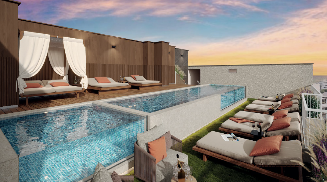 🌿 Áreas Comunes: Lobby doble altura | Jardín interior | Piscina + Jacuzzi | BBQ Zone | Sala Bar | Gimnasio | Lavandería | Bike Zone