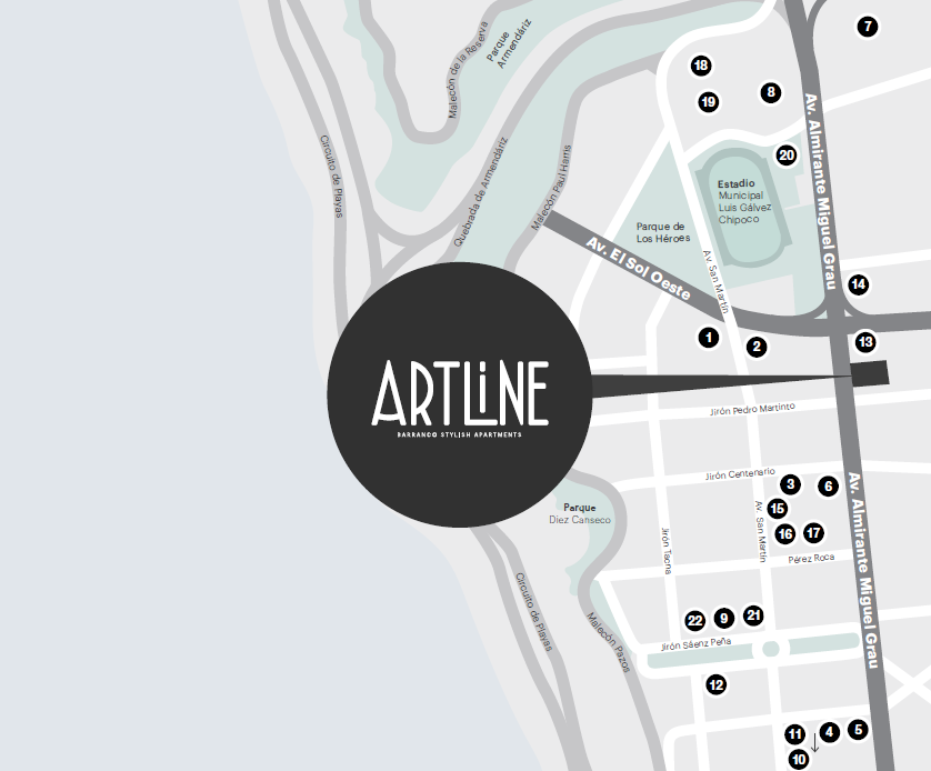 Entretenimiento: 18. KO Urban Detox Center | 19. Club de Tennis de Barranco | 20. Estadio Chipoco | 21. —