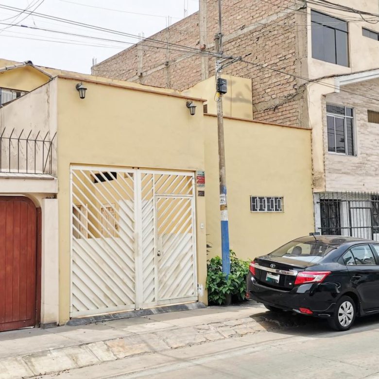 La casa está construida en un solo piso y cuenta con cochera, sala comedor, cocina, 3 dormitorios que comparten un baño, y un patio interno con zona de servicio. Los linderos son de 8.50mL en el frente y 16.50mL en el lado. La propiedad cuenta con parámetros municipales para construir hasta 3 pisos y todos los papeles están en orden, sin gravámenes ni cargas.