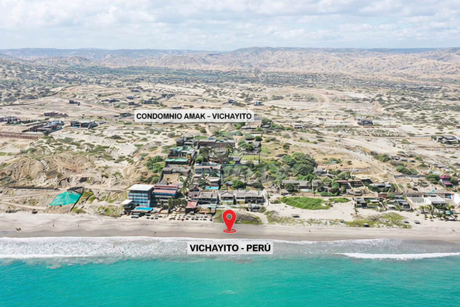 Ubicado en el Condominio Amak – Vichayito, dentro de la Primera Etapa de Las Lomas de Vichayito, en el distrito de Los Órganos, Piura. Zona exclusiva, tranquila y rodeada de naturaleza, con fácil acceso y entorno consolidado.