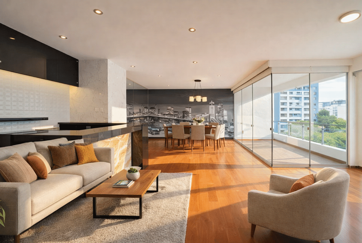 ¿Cómo se distribuye? Primer nivel: Dormitorios | Baños | Sala | Comedor | Cocina totalmente renovada. Segundo nivel: Terraza panorámica | Jardín vertical | Zona social conectada al rooftop del edificio | Ambientes integrados para reuniones y descanso.