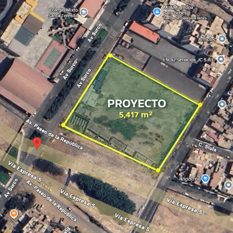 Av. Prolongación Avenida Surco, Urb. Las Ánimas – Santiago de Surco. Entre Av. Surco y Jr. Francisco de Toledo | Frente a la futura Nueva Vía Expresa.