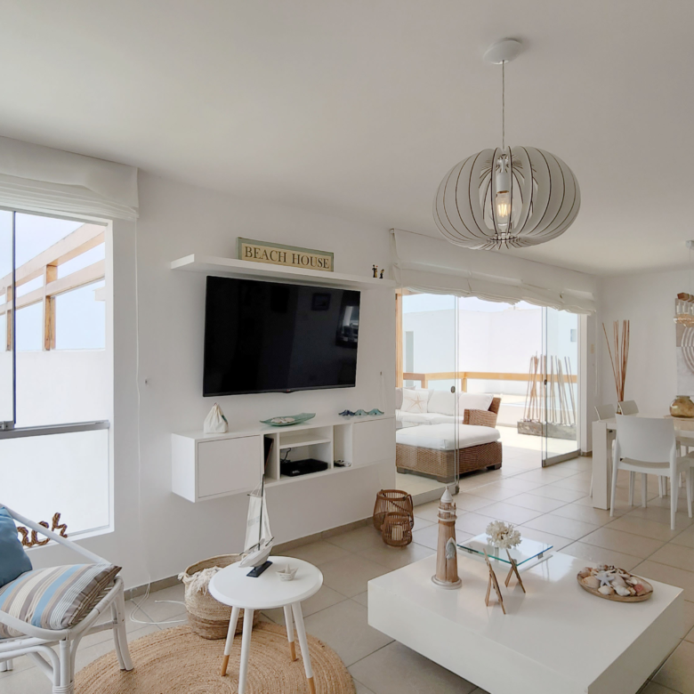 Descubre este hermoso penthouse ubicado a pocos metros de la playa en el condominio Asia Azul, en Sarapampa, Km. 107.5 de la Panamericana Sur. Con una terraza amplia con piscina y área de parrilla, este penthouse completamente amoblado, equipado y decorado, te ofrece la combinación perfecta de lujo y comodidad. Cuenta con un dormitorio principal con walking closet y baño, los otros 3 dormitorios comparten 2 baños completos, baño de visita, lavandería, cuarto y baño de servicio, 2 cocheras y depósito. Todo el departamento tiene muy buena ventilación e iluminación natural.
