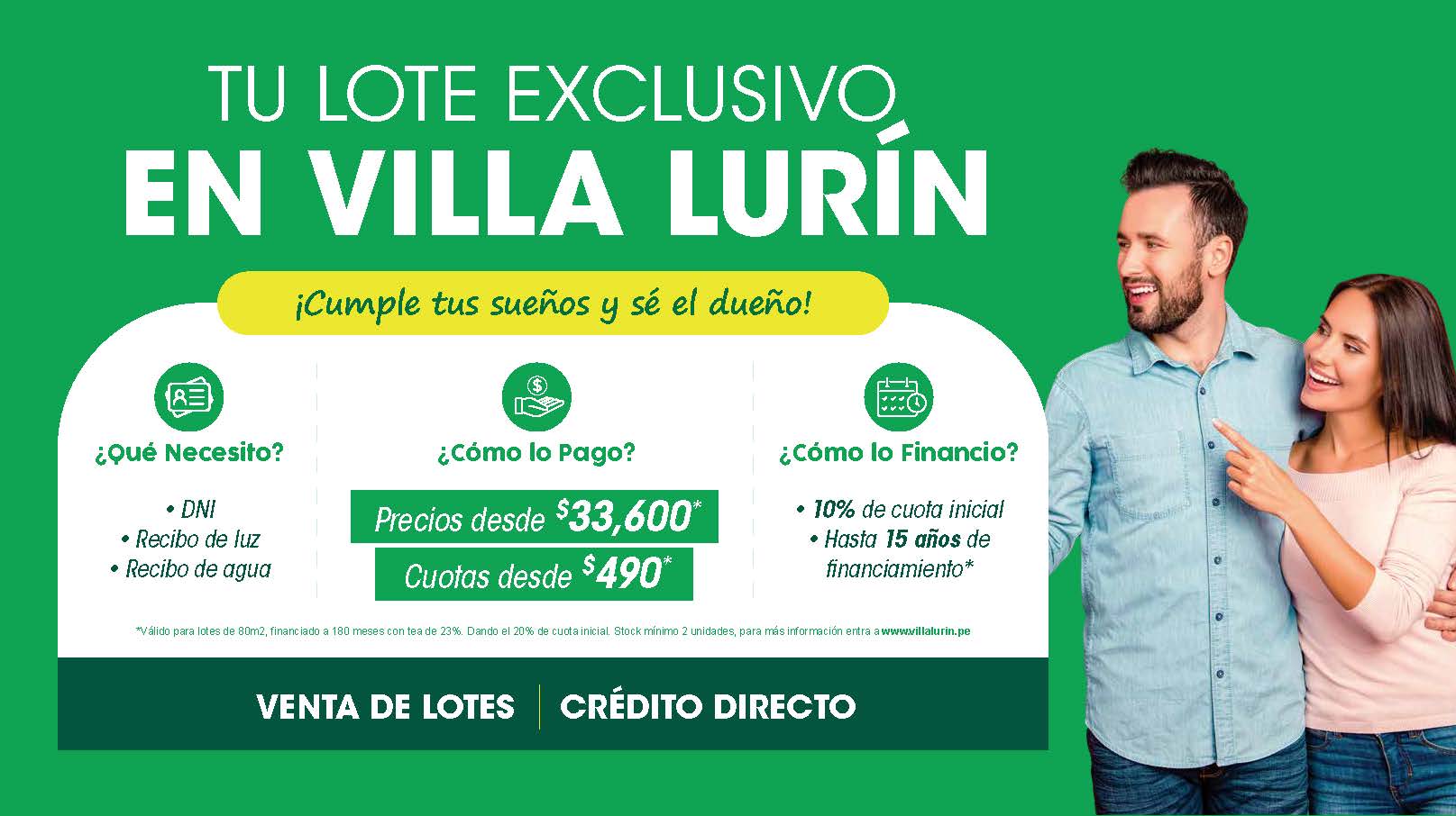 ¡No esperes más y conviértete en propietario en Urbanización Villa Lurín! Contáctanos para obtener más información y asegura tu futuro en este maravilloso lugar.